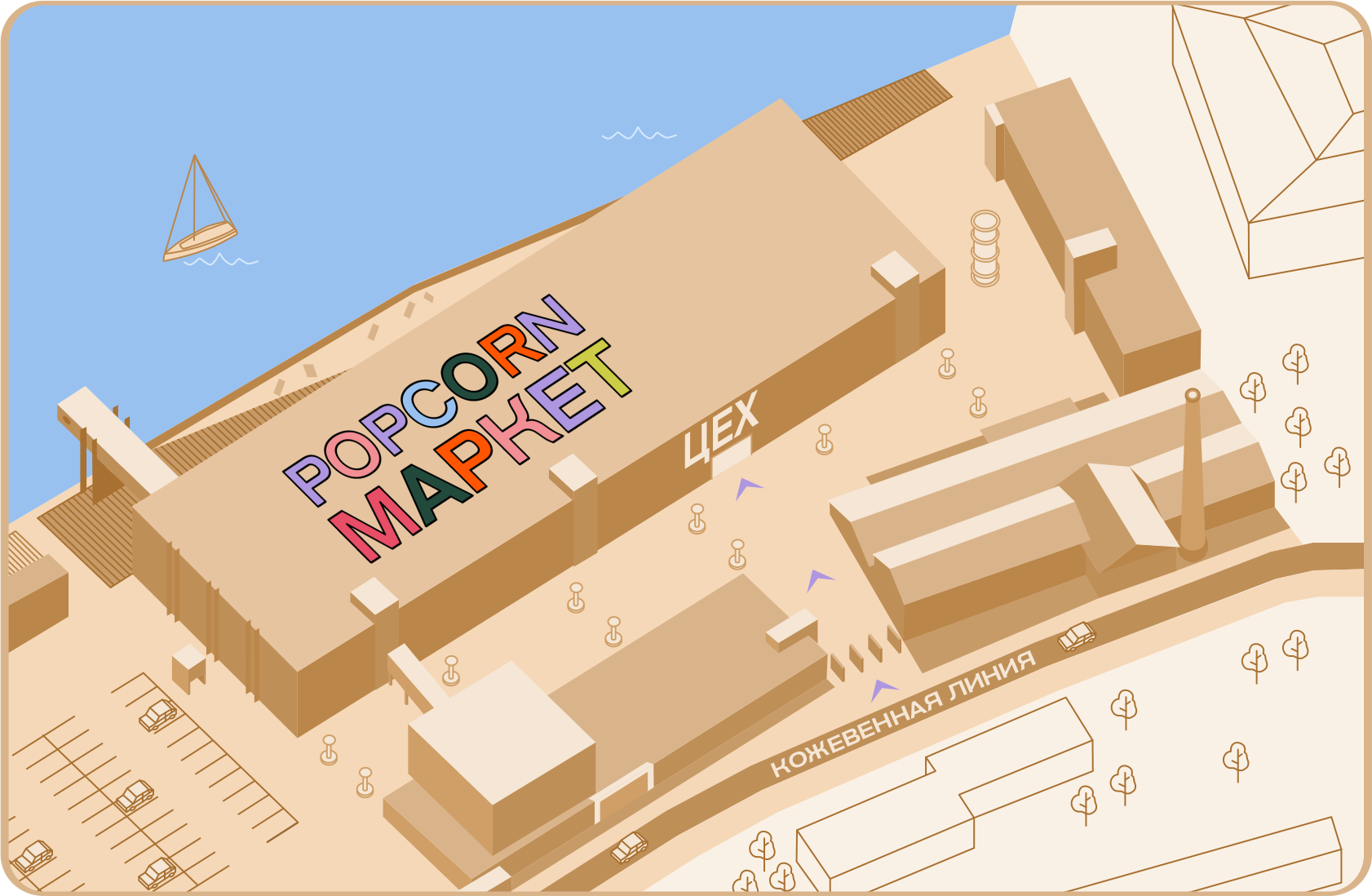 Петербург, Москва, Сочи, Кострома — POPCORN МАРКЕТ объединяет проекты из разных городов, чтобы открывать покупателям новые имена и прививать любовь к стильным и качественным вещам российских брендов. Мы заботимся о своих резидентах и охотно делимся накопившимся опытом продаж. Маркет проходит в пространстве Севкабель Порт каждые 2-4 месяца. Вы можете подать заявку на ближайший фестиваль или предстоящий.