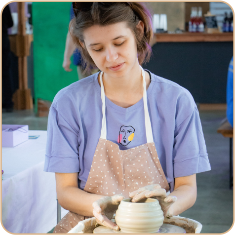 Наши резиденты охотно делятся опытом на мастер-классах. Под их руководством можно сделать свечу с уникальным ароматом, сшить кожаный кошелек или связать уютную сумку маршмэллоу из толстой пряжи.